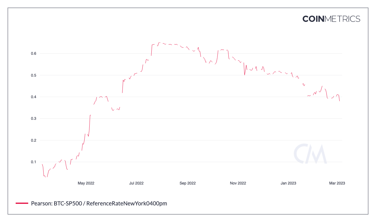 그러나 암호화폐와 주식의 상관관계는 2022년 말부터 감소하고 있으며, 코인 메트릭스의 데이터에 따르면 비트코인과 S&P 500의 90일 상관계수는 현재 0.38로 2022년 6월 이후 가장 낮은 수준입니다. 상관계수가 1이면 두 움직임이 완벽하게 동기화되어 있음을 의미하며, 음수 1이면 반대 방향으로 움직이고 있음을 나타냅니다.