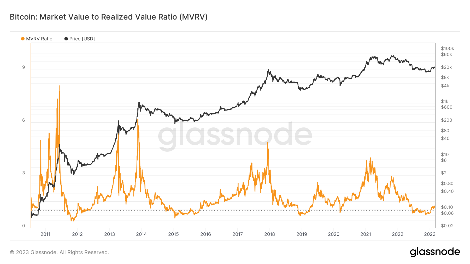 - MVRV 거래가 1 미만이면 역사적으로 약세장 바닥을 의미하며, 현명한 자금 축적이 작용하고 있습니다.