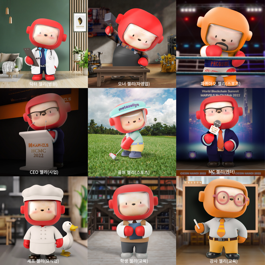 블록체인 브랜드 기획사 ‘㈜젤리스페이스(대표 조현진)’의 메타젤리스(MetaZellys) 프로젝트가 국내 1위 당구대 제조·판매업체인 ‘㈜허리우드(대표 홍승빈)’를 위한 커스텀 디자인 ‘빌리어즈 젤리’ NFT(PFP)를 선보였다. 이번 허리우드를 위한 커스텀 디자인 ‘빌리어즈 젤리’ 캐릭터는, 오는 17일부터 19일까지 베트남 다낭에서 진행되는 ‘허리우드 아시아 슈퍼컵(HOLLYWOOD ASIA SUPER CUP)’에서 최초 공개될 예정이다. 베트남 현지 방송사 VTV와 국내 대표 미디어 SPOTV 생중계를 통해 캐릭터가 함께 노출된다. 노출되는 메타젤리스 ‘빌리어즈 젤리’는 당구 스포츠 팬들은 물론, 누구나 쉽게 접할 수 있는 친근한 캐릭터로 대중의 NFT 프로젝트에 대한 관심과 흥미를 지속적으로 제고..